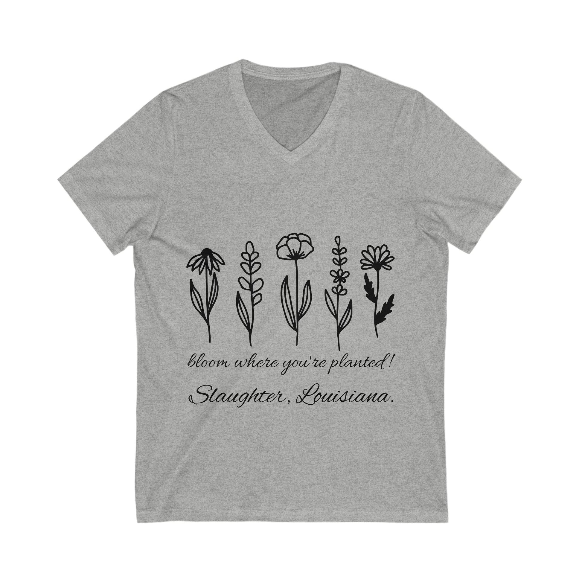 This T-shirt features a unique design with the quote 'bloom where you're planted". Whether you were planted or trans-"planted" in Slaughter, let the world know! It gives off a positive and motivational vibe, perfect for those who want to embrace growth and change.