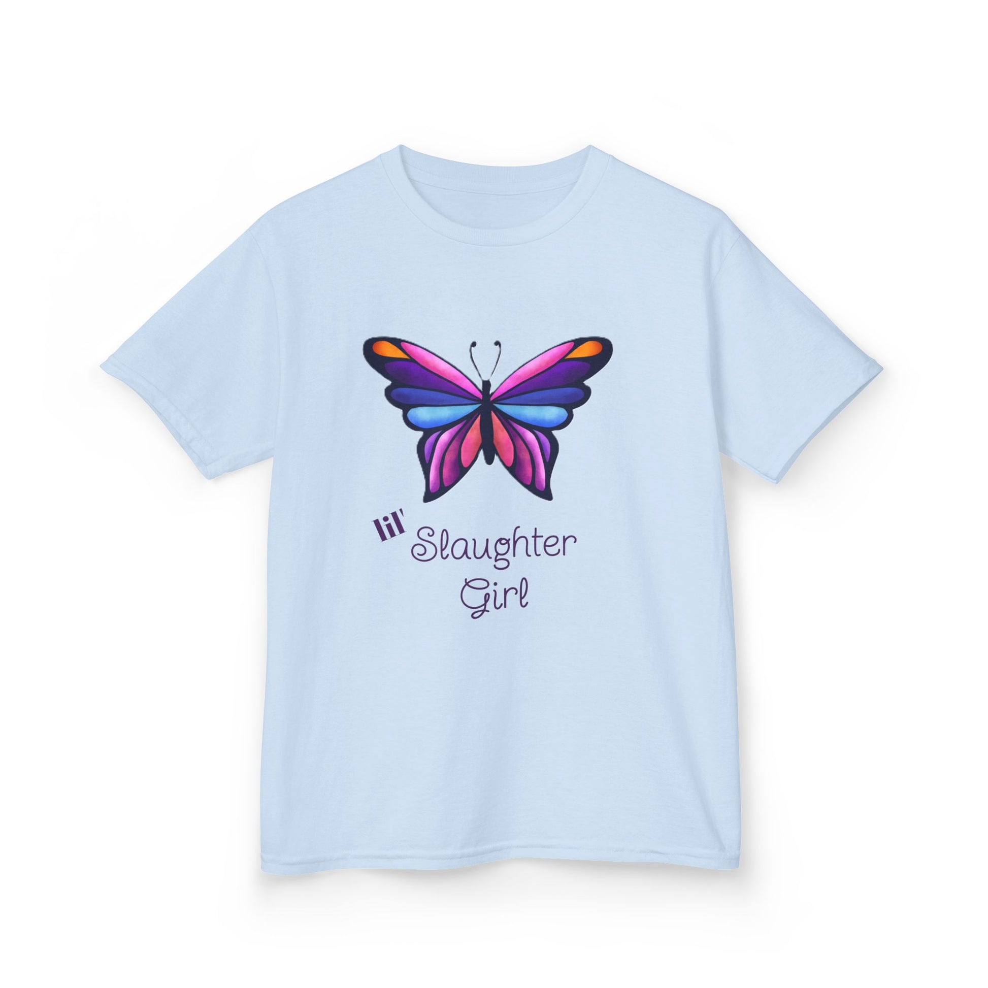 Lil' Slaughter Girl" Tee available for playful Kid. Heavy Cotton™ Tee is perfect for everyday adventures! Featuring a vibrant butterfly design, this tee exudes a cheerful vibe, making it an ideal choice for playful days at the park, birthday parties, or casual family gatherings. It’s also a thoughtful gift for kids on holidays, including Easter and back-to-school season. Designed for comfort and style, this tee is a must-have for any fashion-forward child who loves unique and expressive clothing!