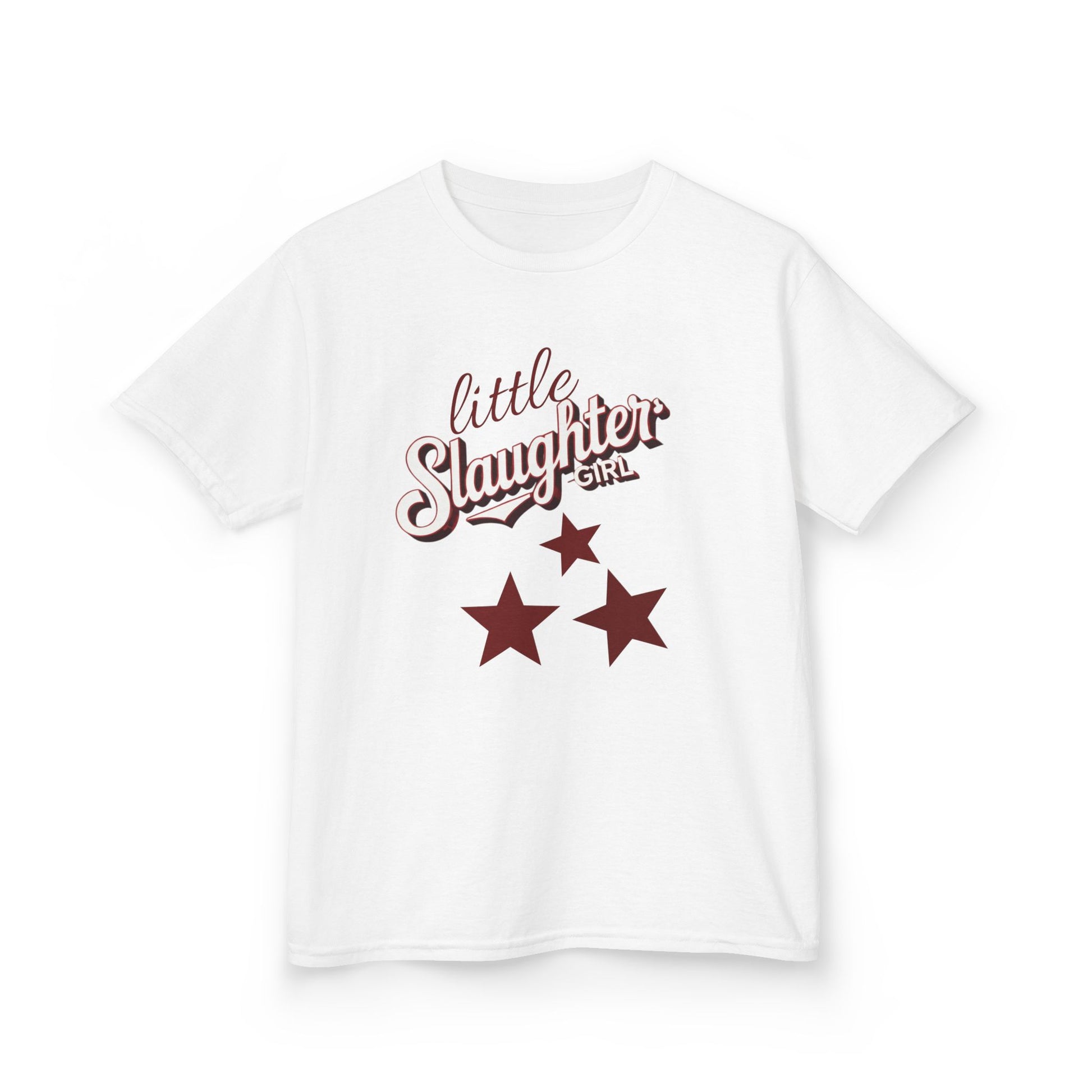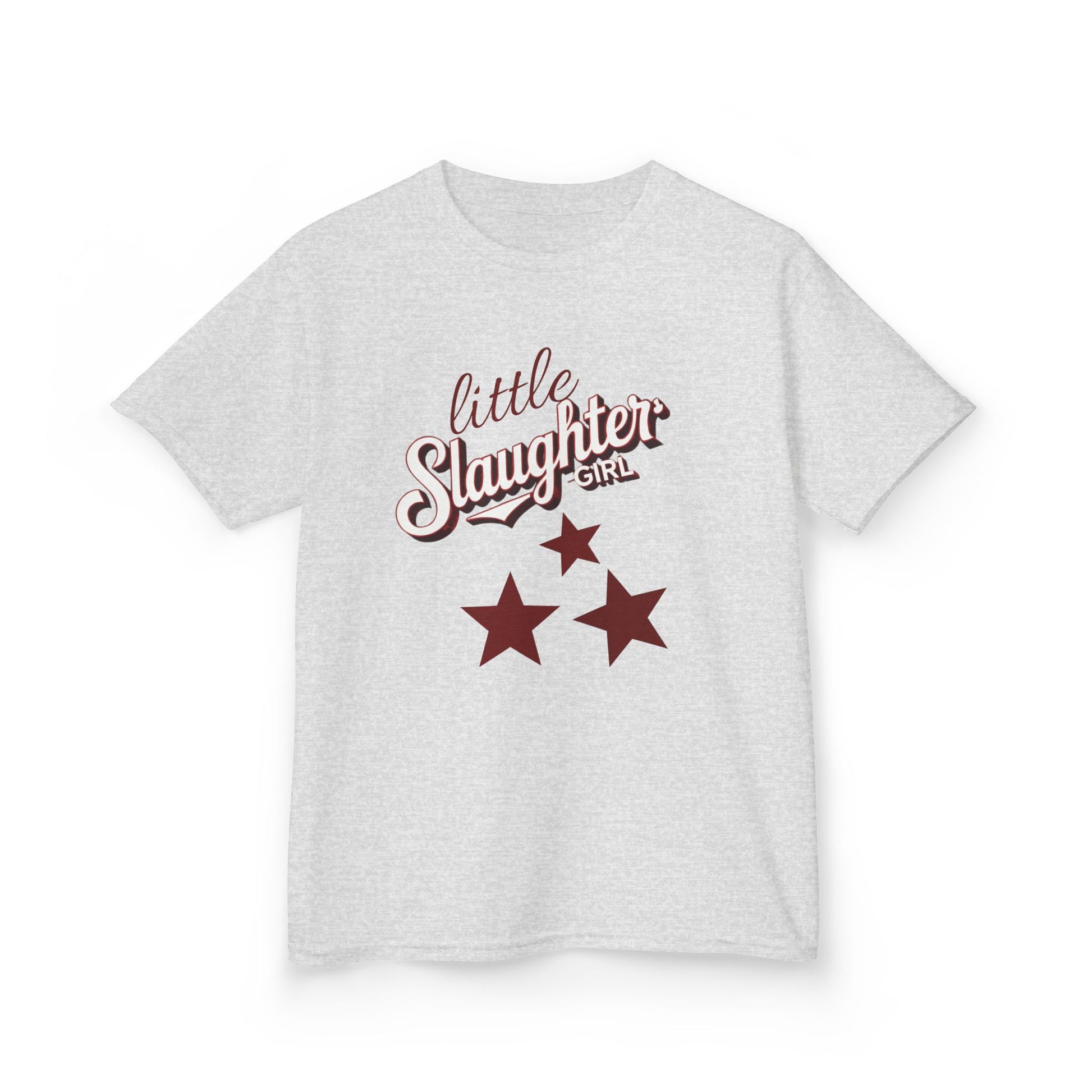 Introducing this playful Kids Heavy Cotton™ Tee, perfect for your little ones! The tee features a fun design that adds a touch of whimsy to everyday outfits, making it an ideal choice for playdates, family gatherings, or casual outings.Let her "Little Slaughter Girl" pride show in this tee with its soft, durable fabric. Designed with kids in mind, it celebrates their vibrant personalities while providing practicality for parents. Ideal for holiday gifting or seasonal celebrations, this tee is sure to be a favorite in any child's wardrobe.