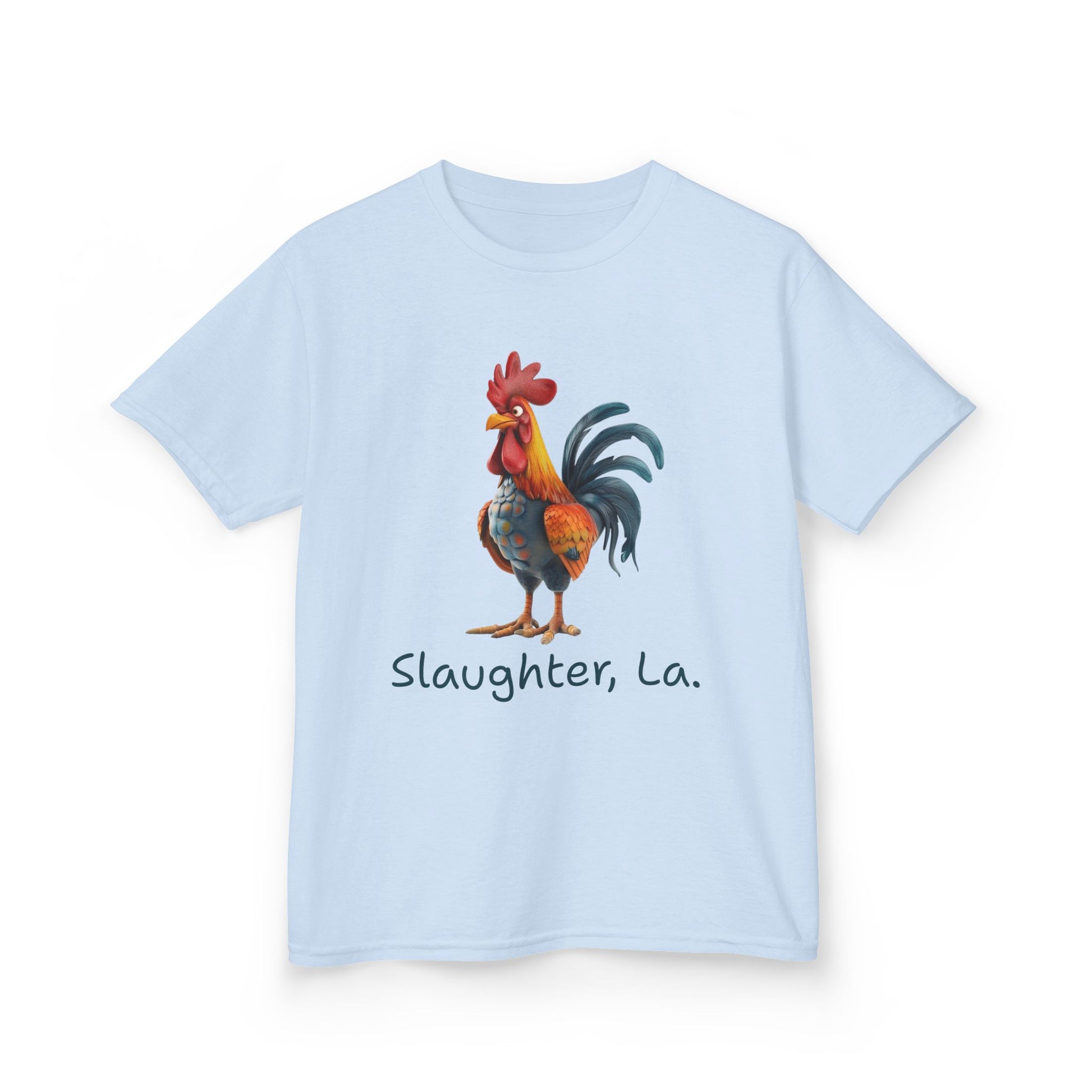 Introducing our delightful Rooster Tee, a perfect blend of comfort and charm. This soft, classic-fit tee is designed for active young ones, allowing them to express themselves effortlessly. The vibrant, playful design adds a splash of fun to any outfit, making it ideal for playdates, school days, or family gatherings. Its durable construction ensures it withstands everyday wear and tear while maintaining a polished look. Perfect for children, this tee is a wonderful choice to show young Slaughter Pride!