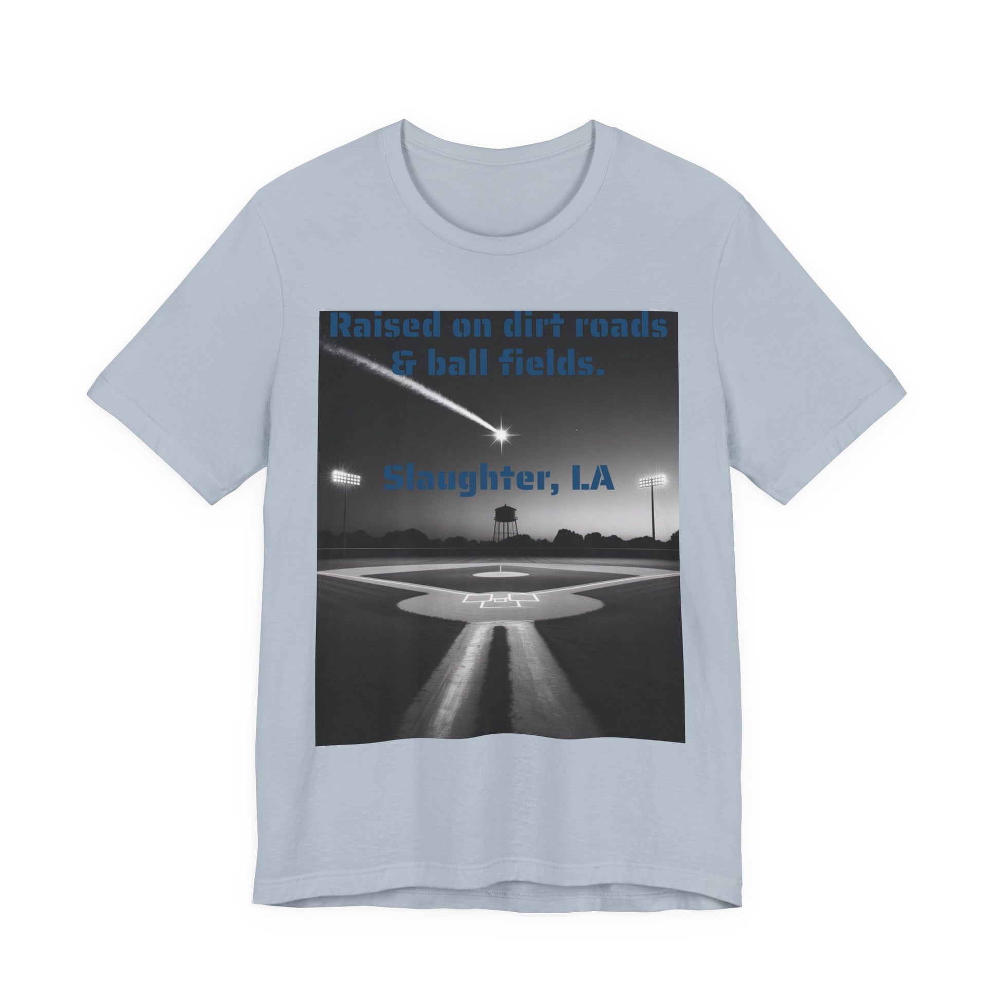 Embrace casual comfort with this Unisex Jersey Short Sleeve Tee. Designed for a relaxed fit, it’s perfect for everyday wear, whether you're out and about or lounging at home. This tee exudes a laid-back vibe, making it easy to pair with jeans, shorts, or even layered under a jacket. Ideal for sports enthusiasts and anyone who appreciates a good message on their clothing, this tee is a great conversation starter. Let the world know you grew up in Slaughter LA on dirt roads & ball fields!