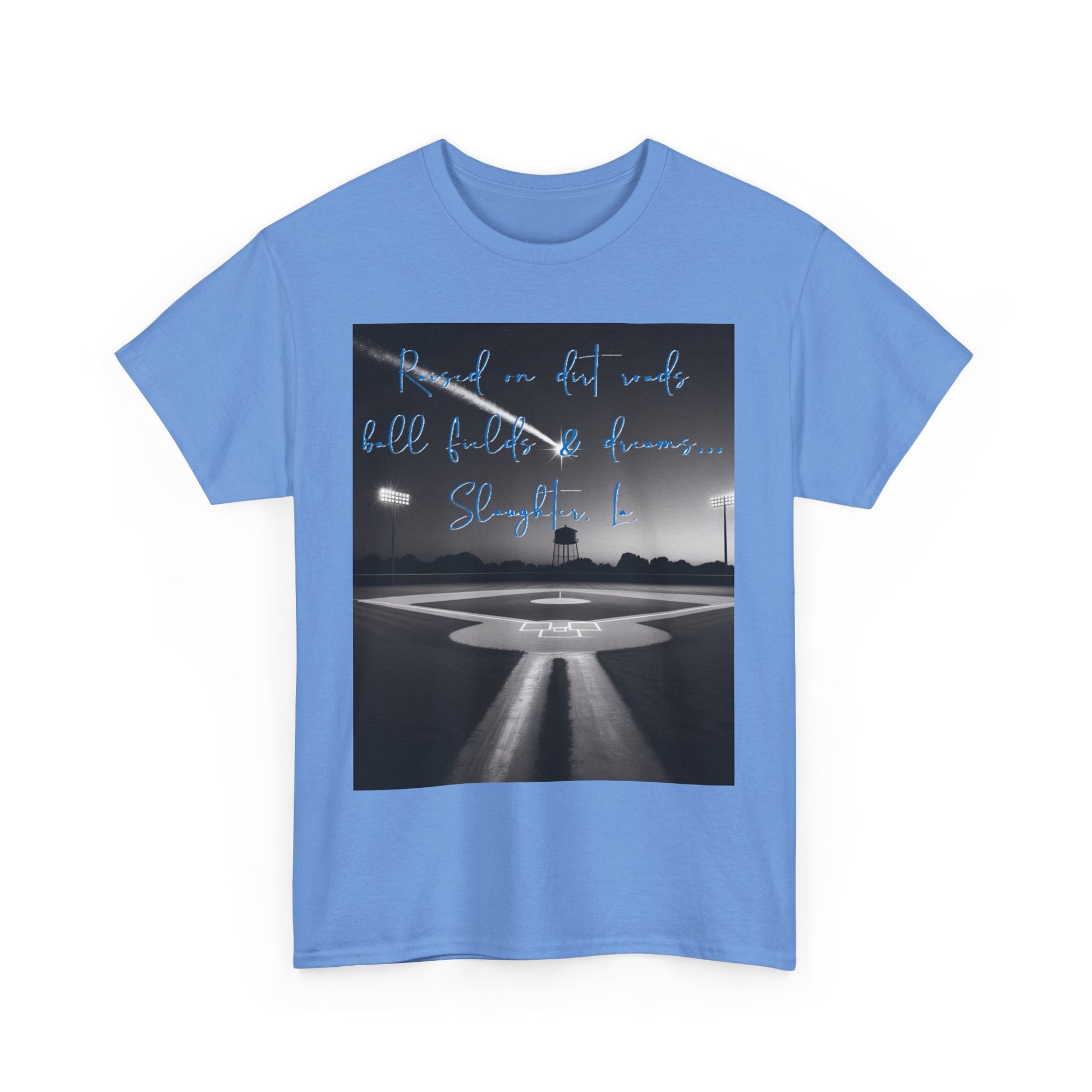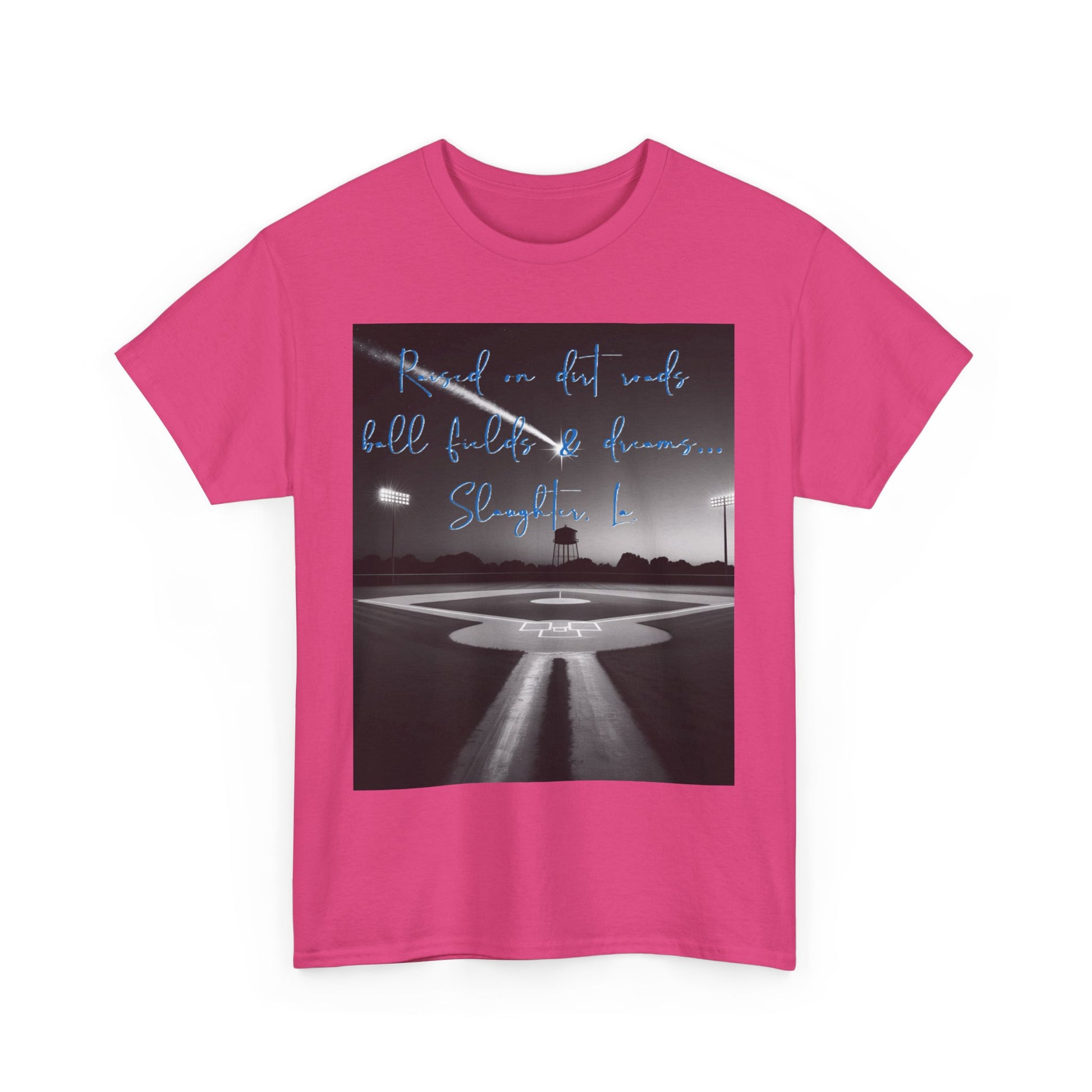 Introducing our comfortable Unisex Heavy Cotton Tee, designed to elevate your casual wardrobe. This tee features a unique and vibrant graphic that captures the magic of growing up in Slaughter, perfect for those who cherish moments filled with nostalgia and fun. Its classic fit and crew neckline allow for versatile styling, making it an ideal choice for relaxed outings or semi-formal get-togethers. Perfect for showing your Slaughter Girl pride full of memories.